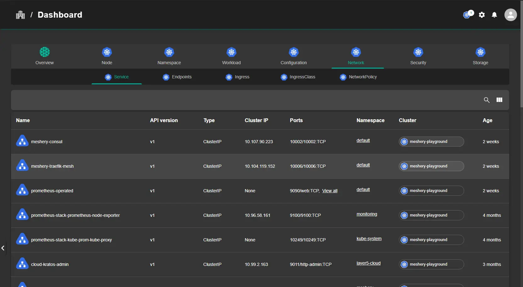Learn more →The Kubernetes operator for Meshery, supports discovery and eventing of greenfield and brownfield of your workloads, services, deployments, replicasets, pods, containers, services, persistent volumes and all of your Kubernetes-based infrastructure.